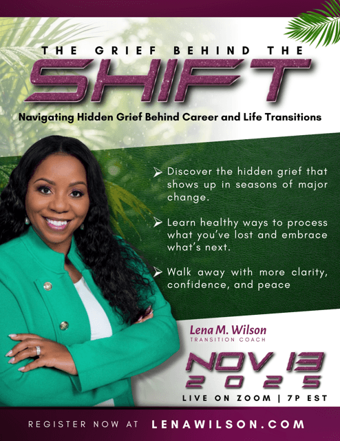 Hi, I’m Lena M. Wilson, Transition and Grief Coach. I retired from my 25-year corporate HR career in 2024 to pursue my passion and my calling to empower women to successfully navigate career and life transitions.